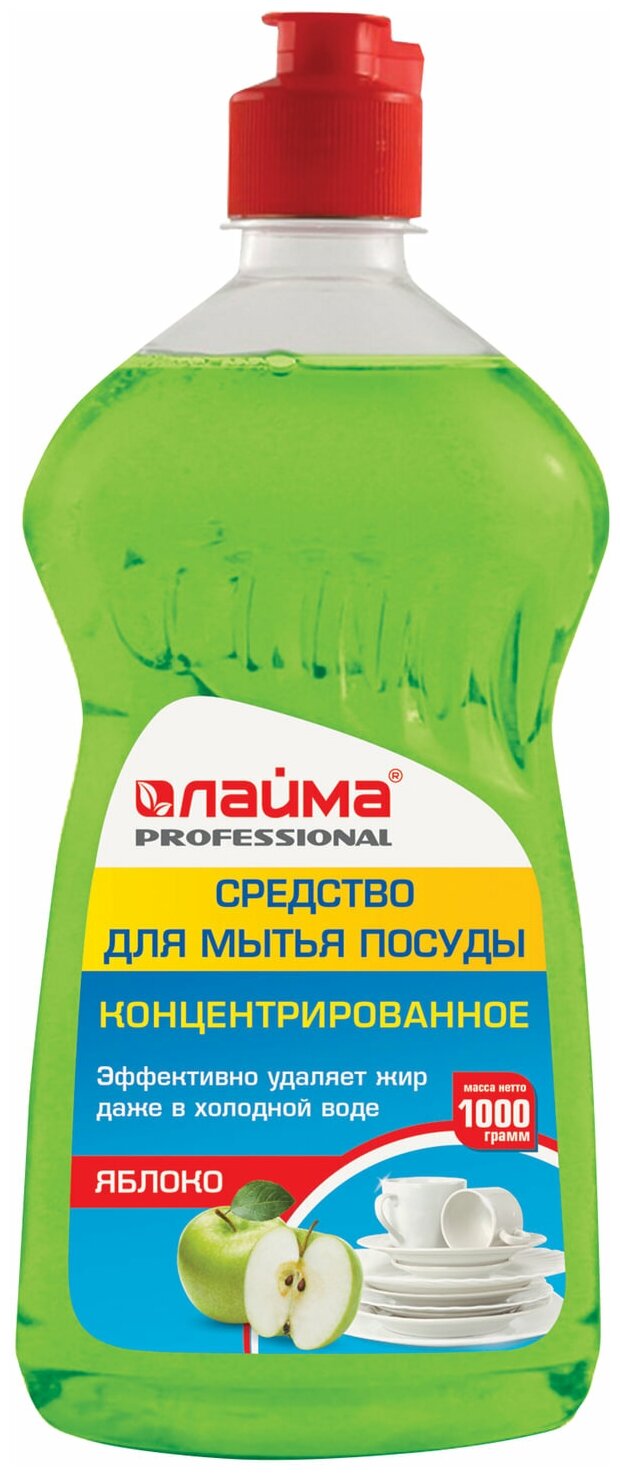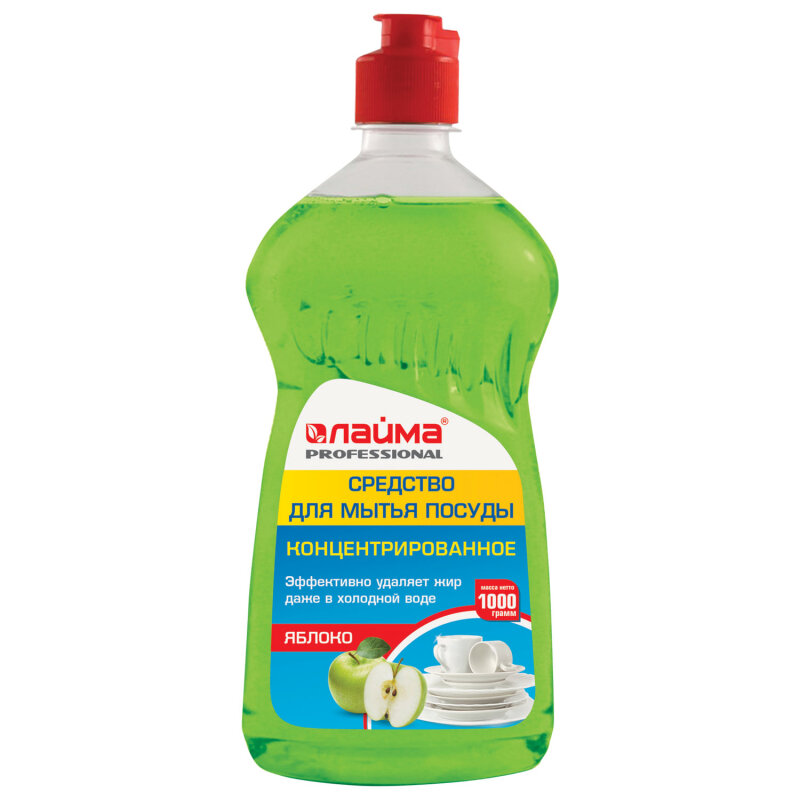 Средство для мытья посуды Лайма 1 кг, PROFESSIONAL, концентрат, "Яблоко" (604648)