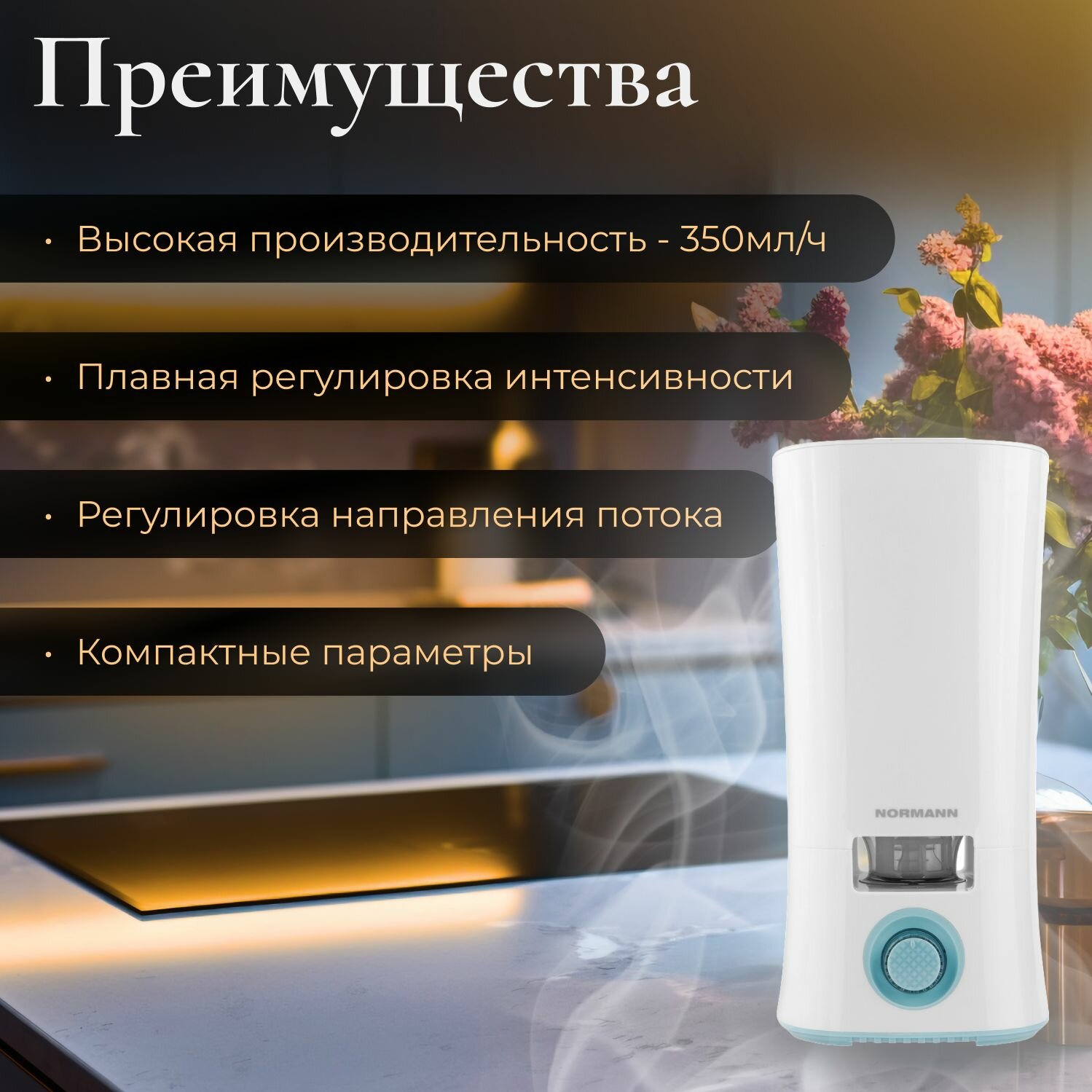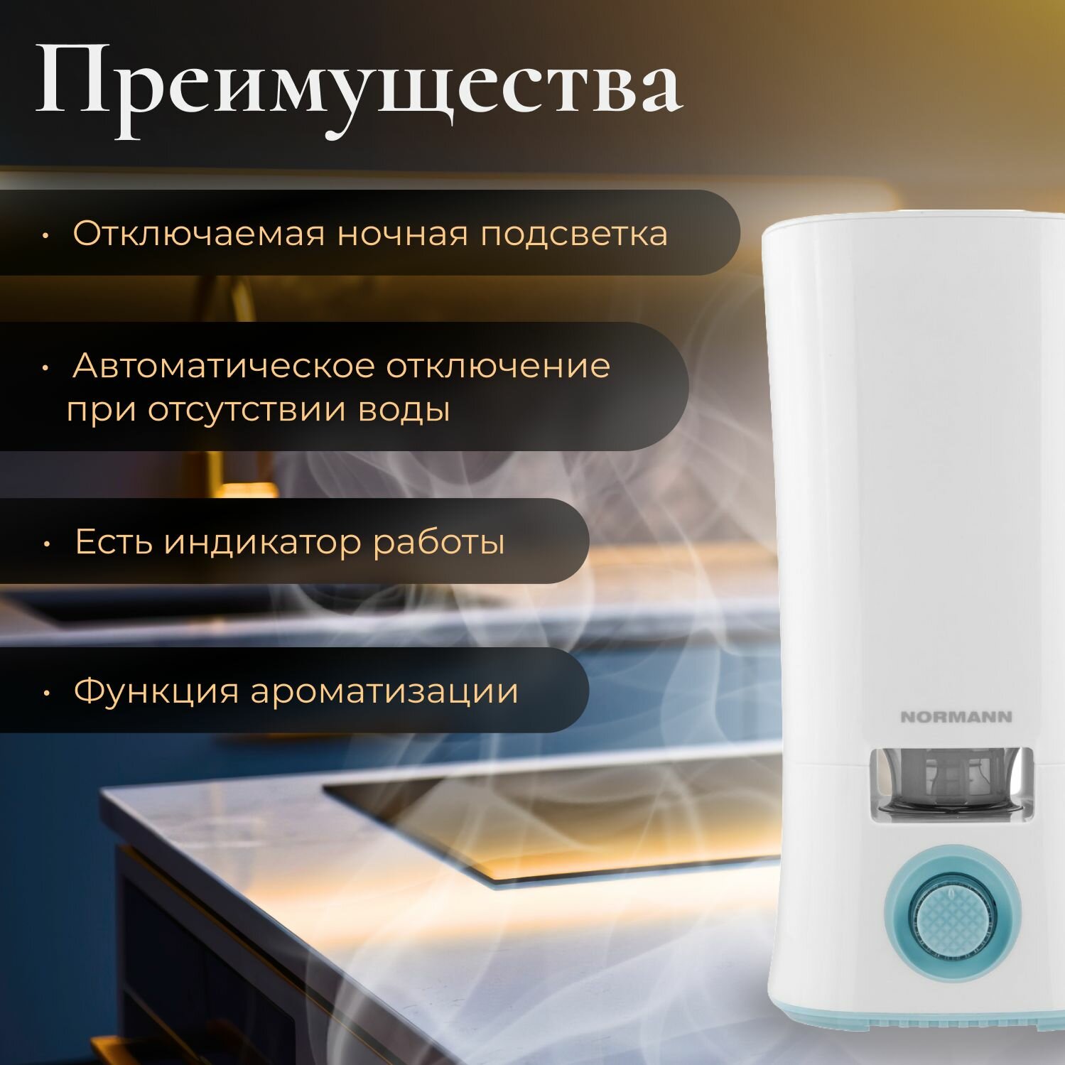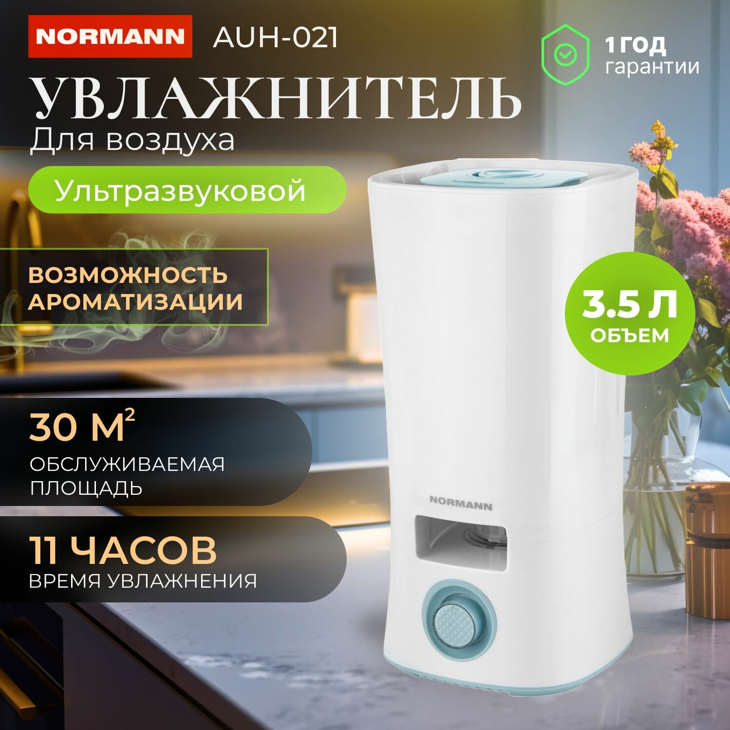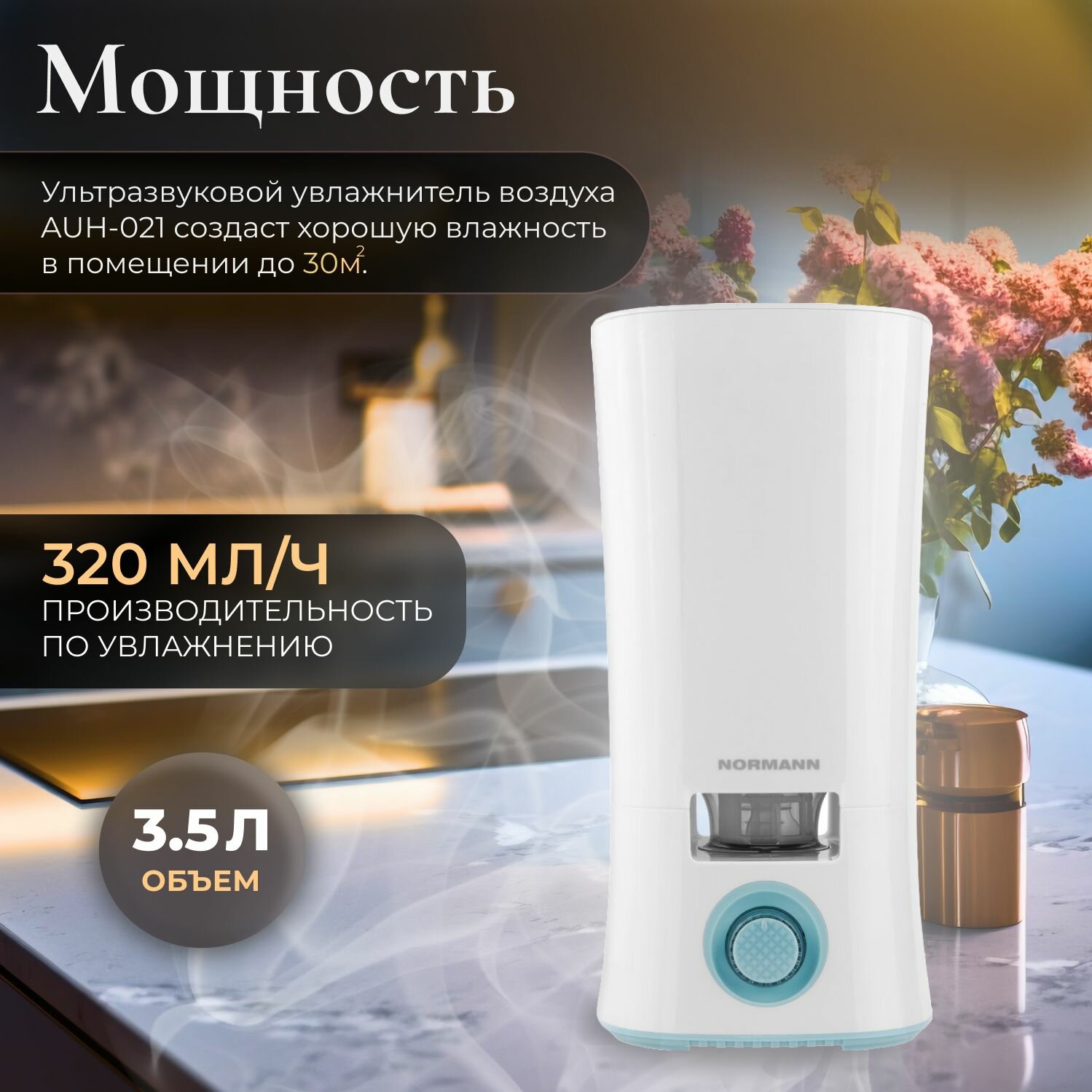 Увлажнитель воздуха NORMANN AUH-021 (30 Вт, 3,5 л, произв. 320 мл/ч, площадь 30 кв.м) интересное: