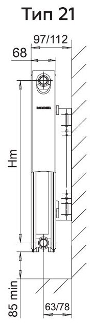 Панельный радиатор 21/500/800 нижн. прав. подключ. Ventil (Rommer)