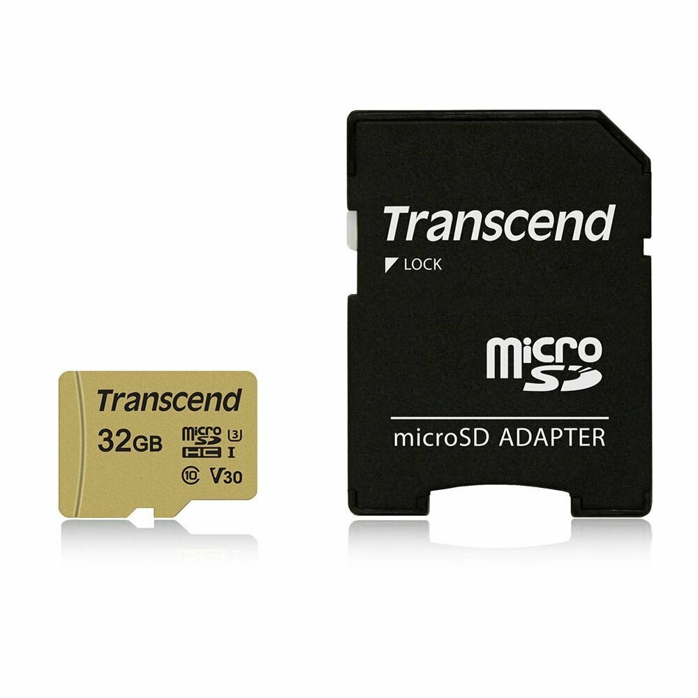 Карта памяти 32Gb MicroSD Transcend + SD адаптер (TS32GUSD500S)