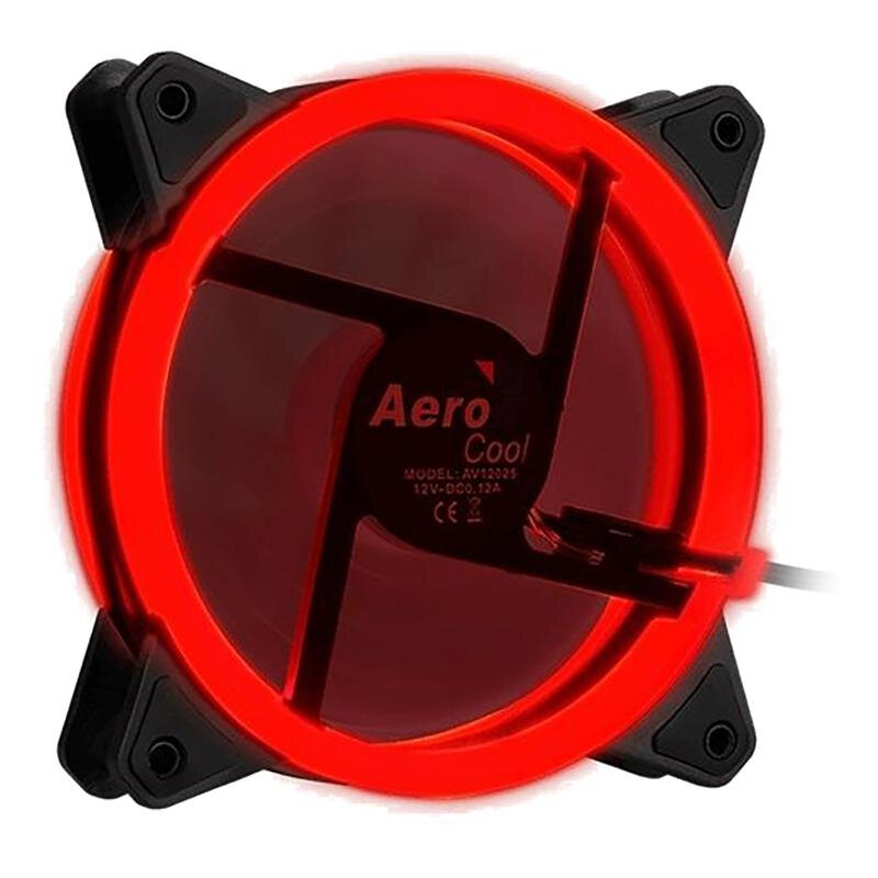 Вентилятор Aerocool REV Red , 120x120x25мм, цвет светодиодов : красный, подсветка в виде двойного кольца, 3+4-Pin, 1200 об/мин, 41,3 CFM, 15,1 дБА