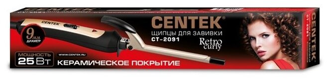 Щипцы Centek CT-2091, 25Вт, керамика, диам 9мм, фиксатор, 200C°, Soft touch, черные