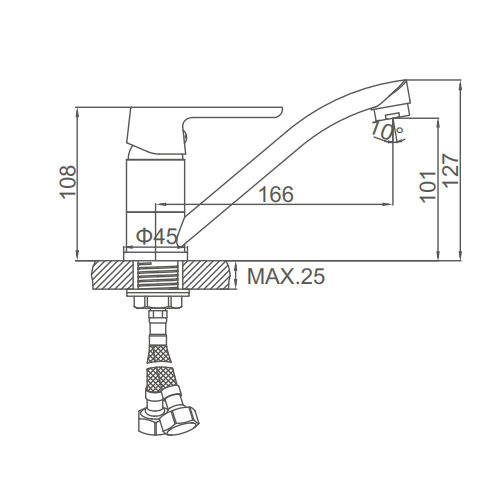 Смеситель для кухни A4266K, с гайкой, гусак короткий, силумин
