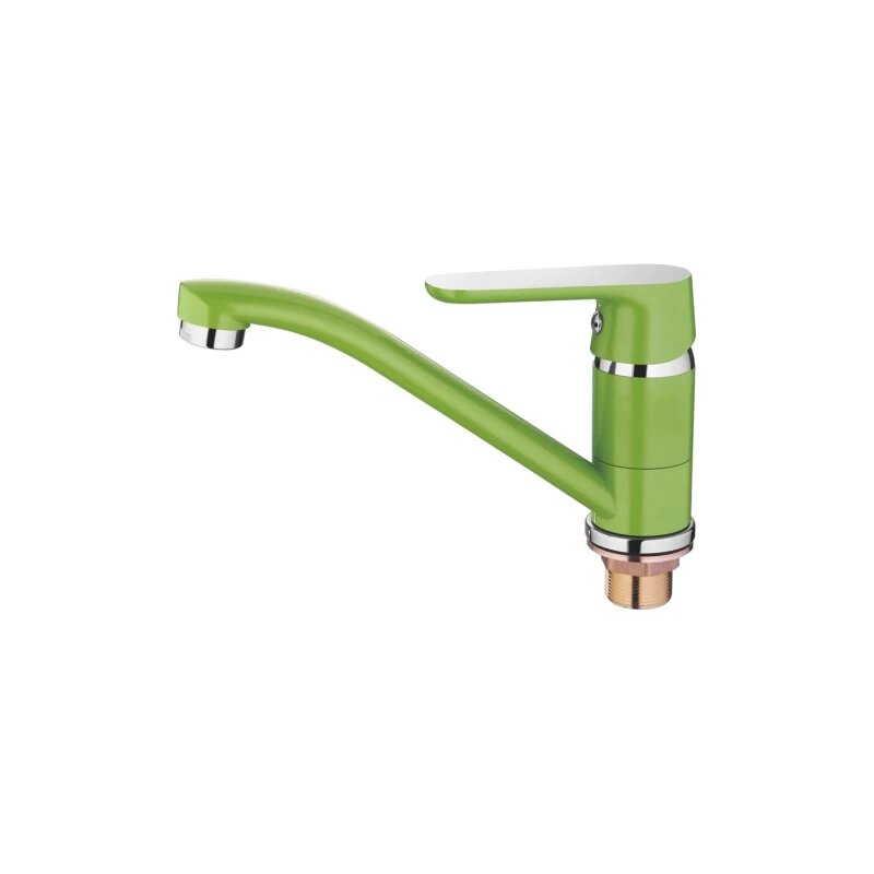Смеситель для кухни A4266K, с гайкой, гусак короткий, силумин, цвет зелёный
