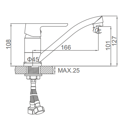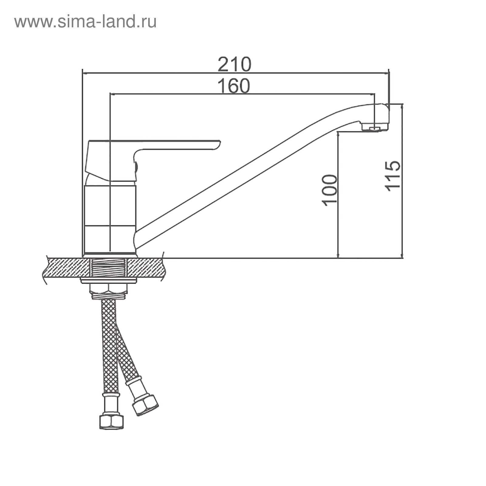 Смеситель для кухни A4266K, с гайкой, гусак короткий, силумин
