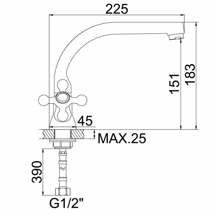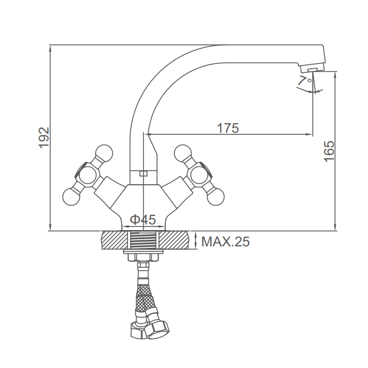 Смеситель для кухни A4471, двухрычажный, с гайкой, хром