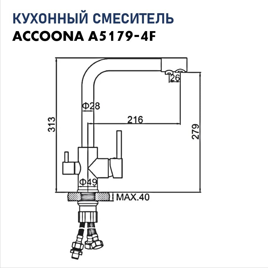 Смеситель для кухни с выходом для питьевой воды Accoona A5179-4E