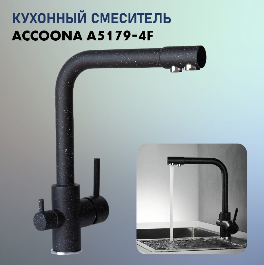 Смеситель для кухни Accoona A5179-4F, с выходом для питьевой воды, латунь, цвет черный (1 шт.)