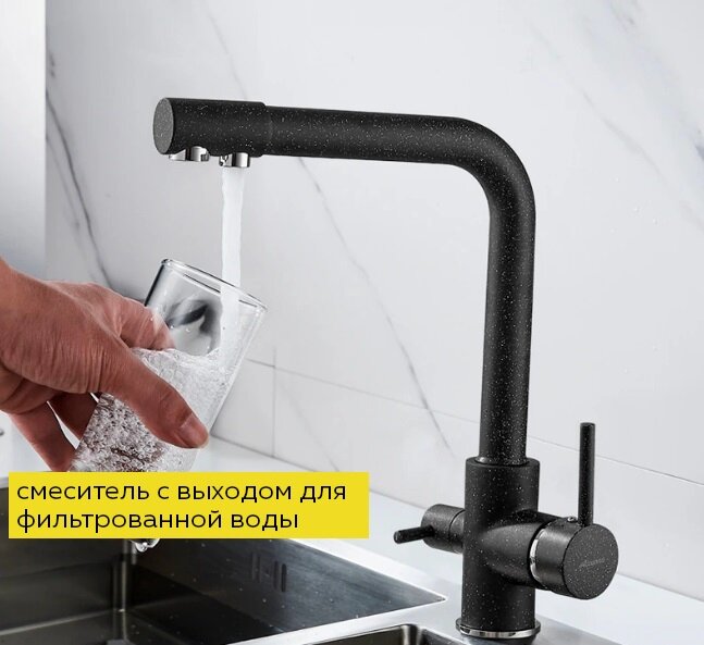 Смеситель для кухни , с выходом для питьевой воды, латунь, цвет черный