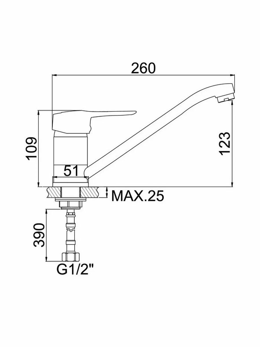 Cмеситель для кухни A5150B, однорычажный, силумин, хром