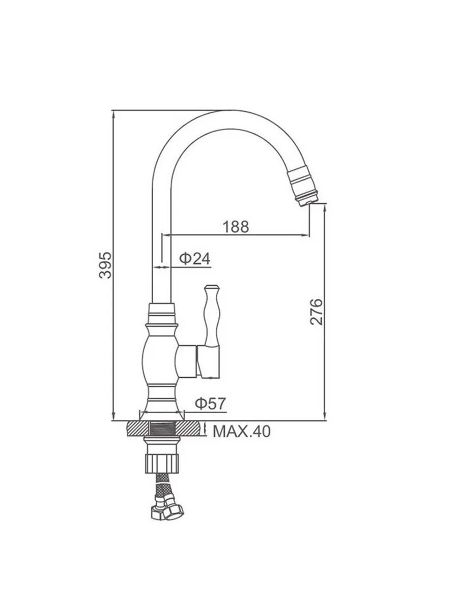 Смеситель для мойки одноручный "Juguni" с гибкой подводкой, JGN0410/D, литой поворотный излив