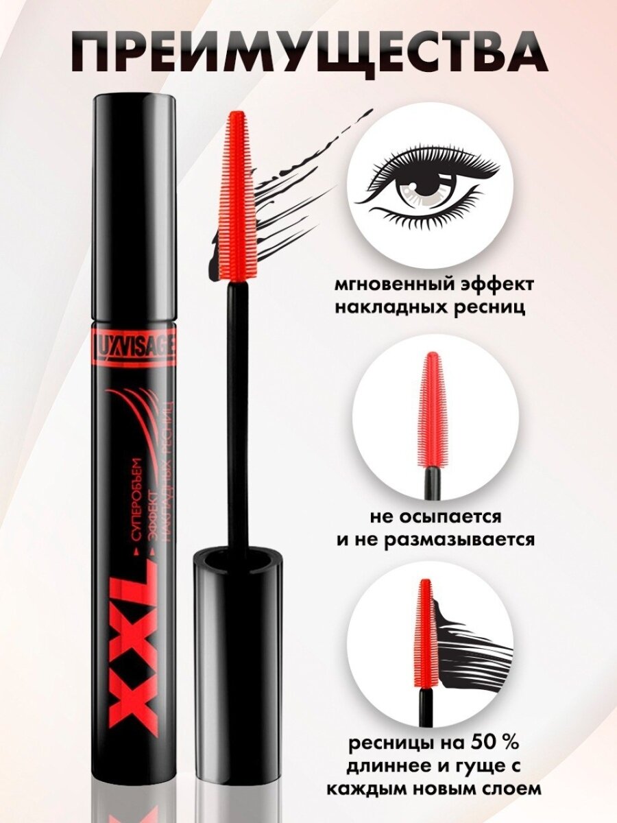 Купить LUXVISAGE Тушь для ресниц XXL Суперобъем Эффект Накладных Ресниц, черный