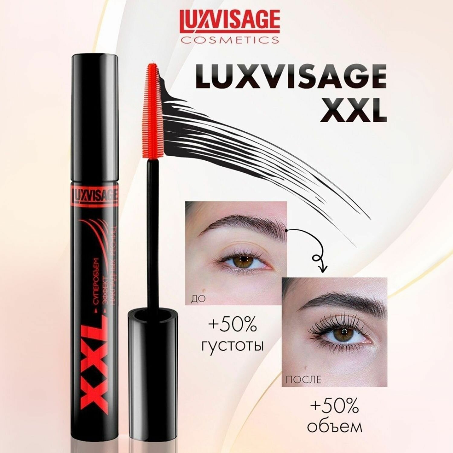 LUXVISAGE тушь XXL суперобъем — эффект накладных ресниц, 9г