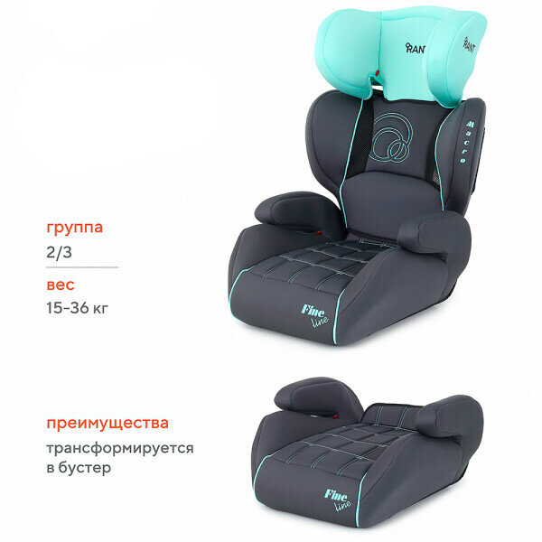 Купить Автокресло детское Rant Macro группа 2/3 от 5 до 12 лет вес 15-36 кг рост 100-145 см бирюзовый