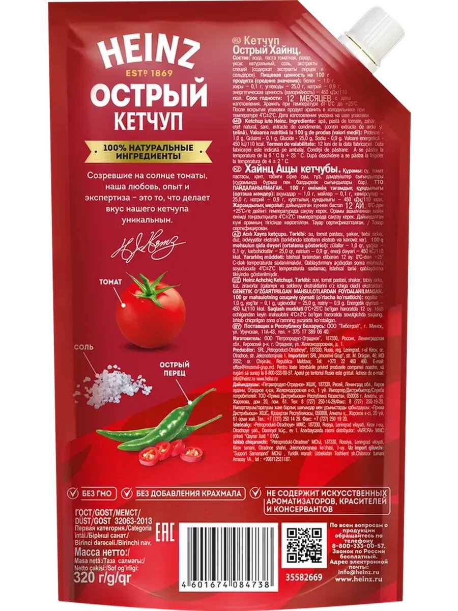 Heinz - кетчуп Острый, 320 гр. интересное: