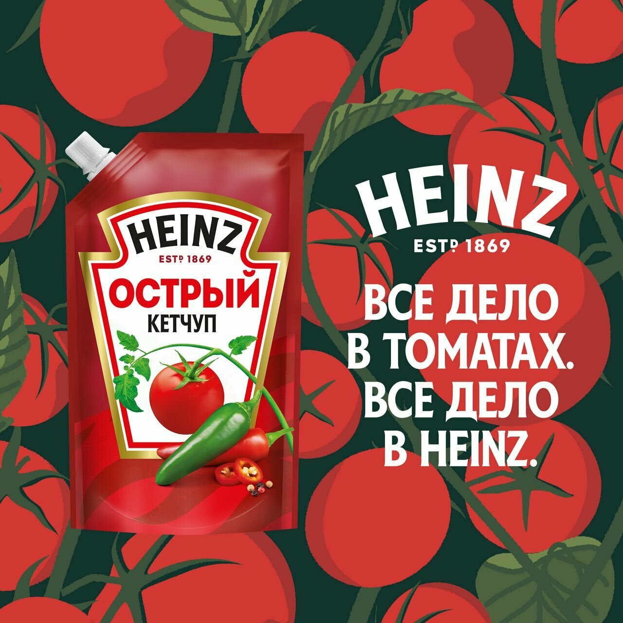 Кетчуп Хайнц Острый 550 г дой-пак