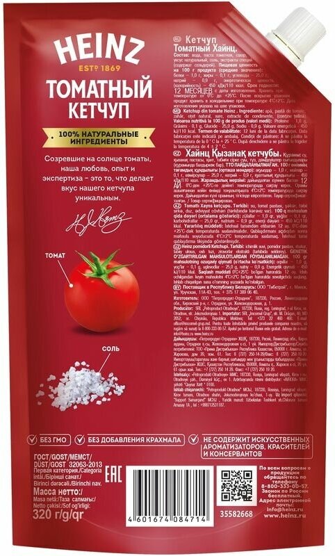 320Г кетчуп HEINZ томатный ДОЙ