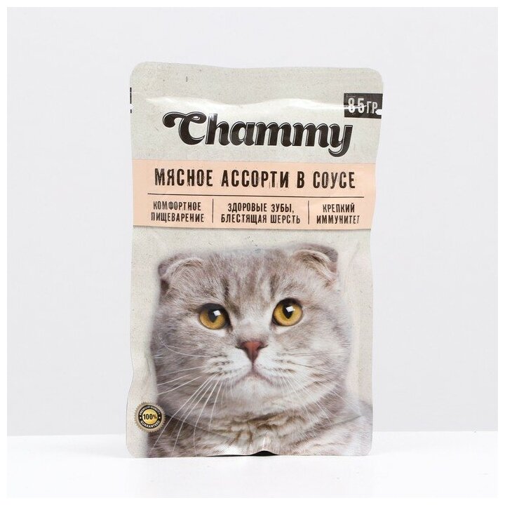 Влажный корм Chammy для кошек, мясное ассорти в соусе, пауч, 85 г
