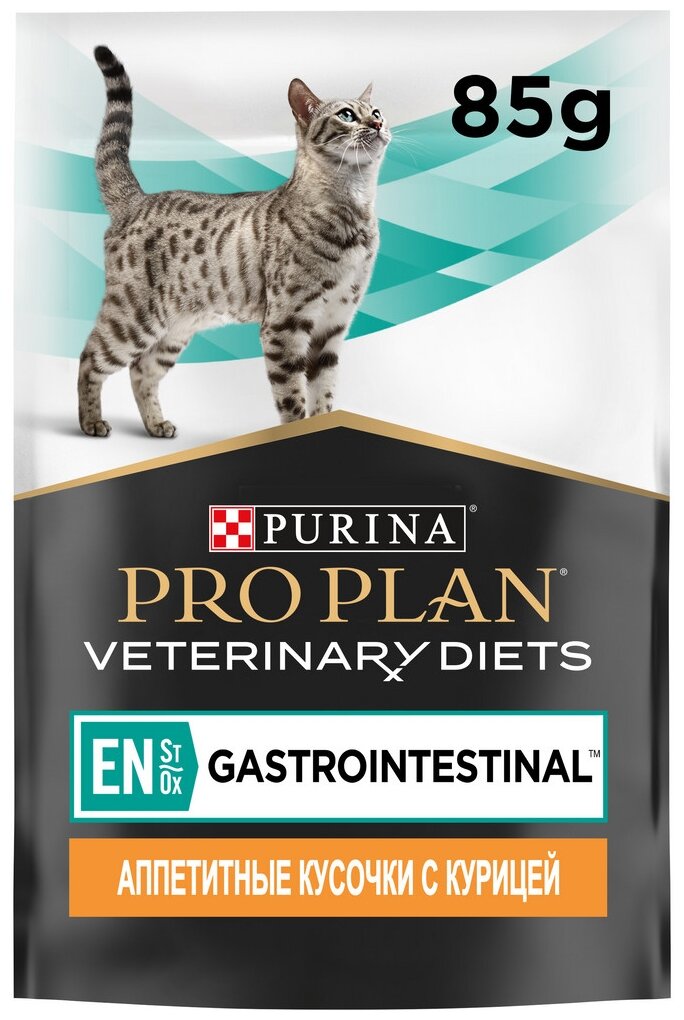 Влажный корм Pro Plan Veterinary Diets EN St/Ox для взрослых кошек и котят для снижения проявлений острого нарушения всасывающей функции кишечника, с курицей, Пауч, 10x85 г