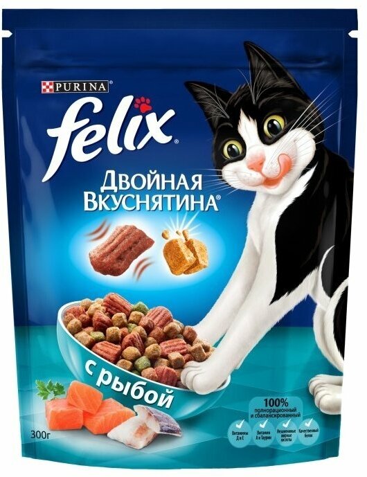 Felix Двойная вкуснятина 200 г сухой корм для взрослых кошек, с рыбой