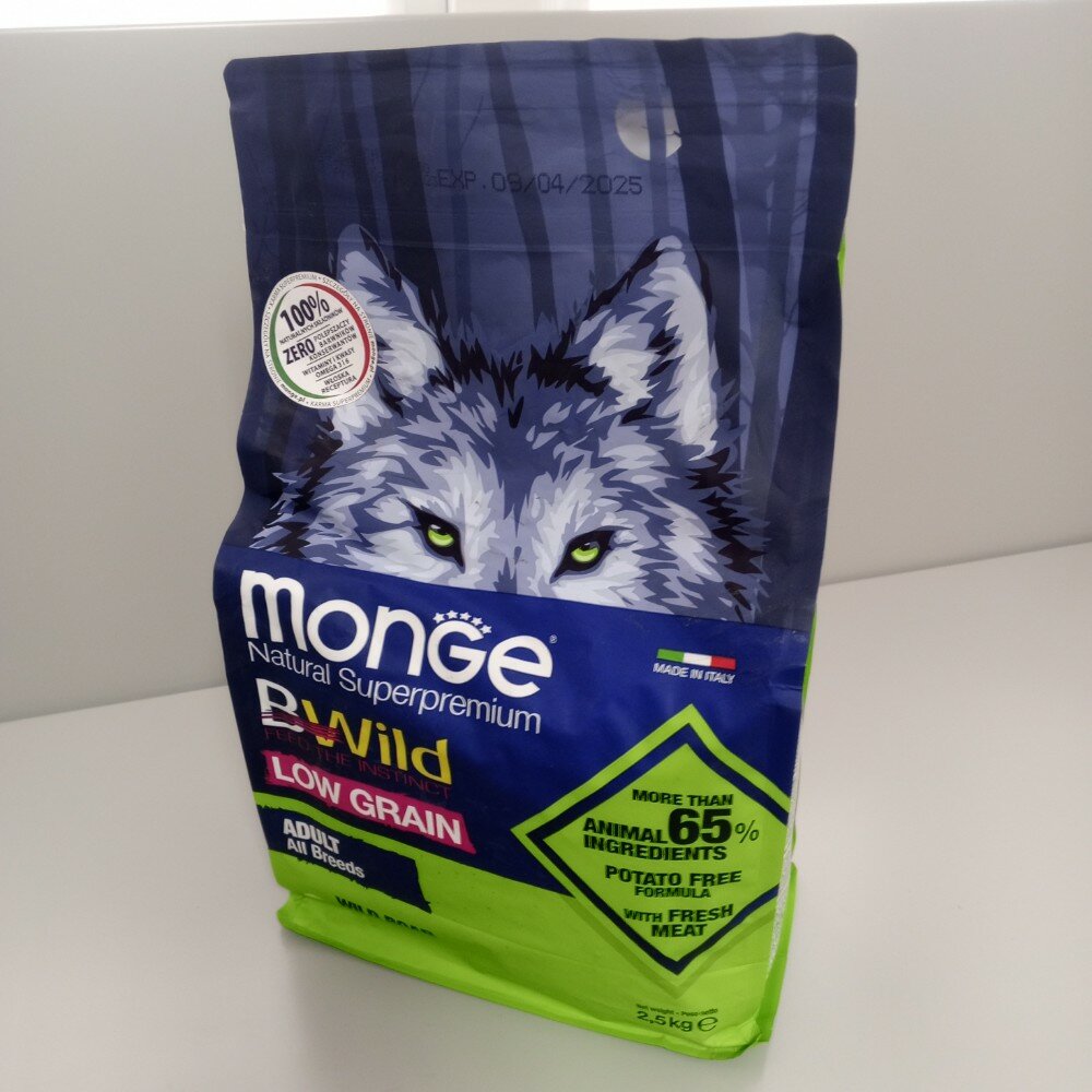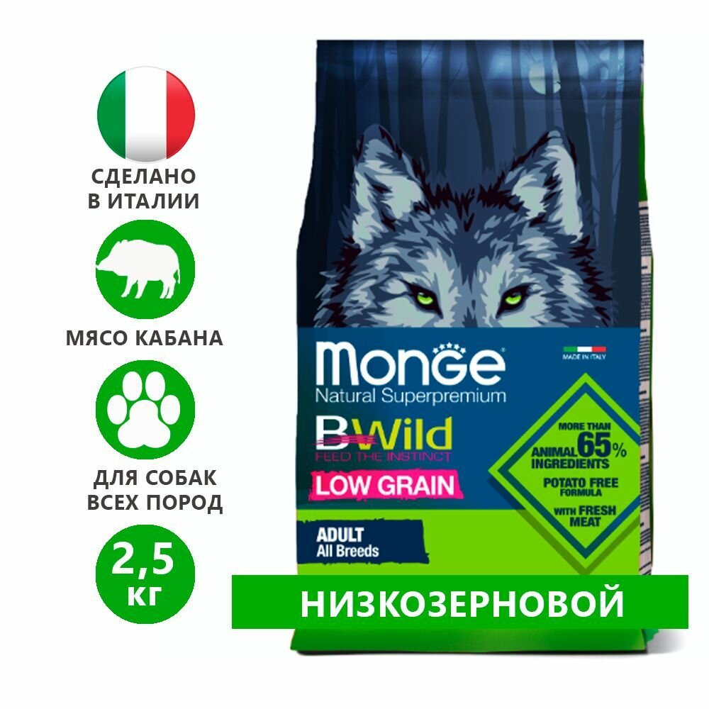 "Корм сухой Monge Dog BWild Low Grain, низкозерновой из мяса дикого кабана, для взрослых собак всех пород, 2,5 кг"
