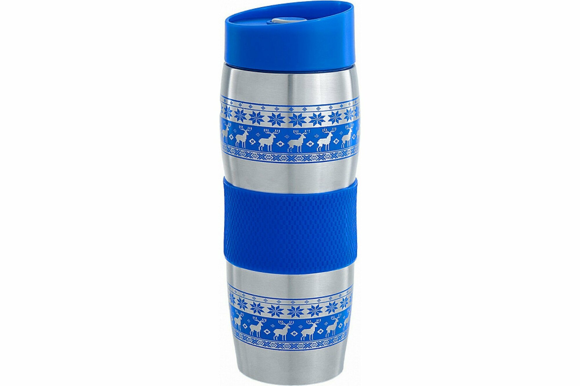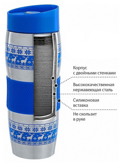 Термокружка Alpenkok с силиконовой вставкой, 0.4 л олени синие