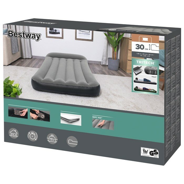 Bestway Кровать надувная Aerolax Twin, 188 х 99 х 30 см, с подголовником, с встроенным насосом 220-240V, 67556 Bestway интересное: