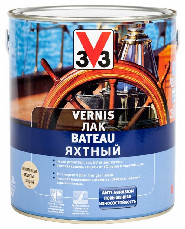 Лак яхтный V33 Vernis Bateau яхтный полуглянцевый алкидно-уретановый бесцветный 5 л