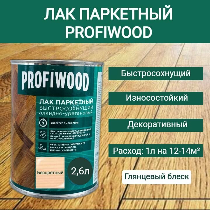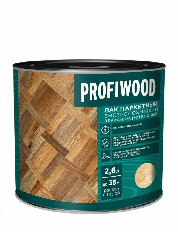 Лак алкидно-уретановый паркетный Profiwood бесцветный 2,6 л/2,4 кг глянцевый интересное: