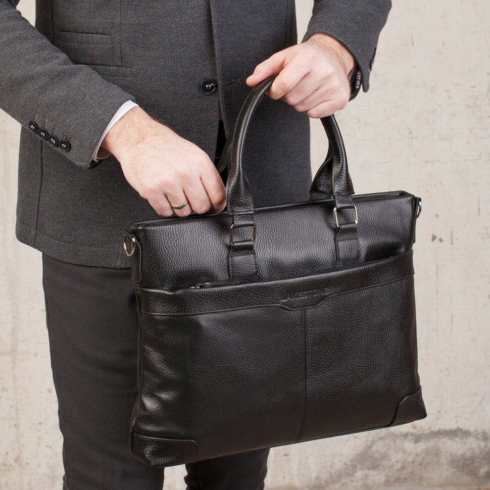 Кожаная деловая сумка для ноутбука Gilroy Black мужская кожаная черная