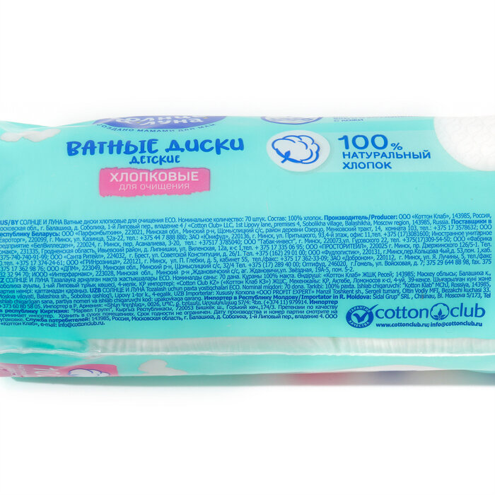 Солнце и Луна Eco Ватные Диски хлопковые 70шт