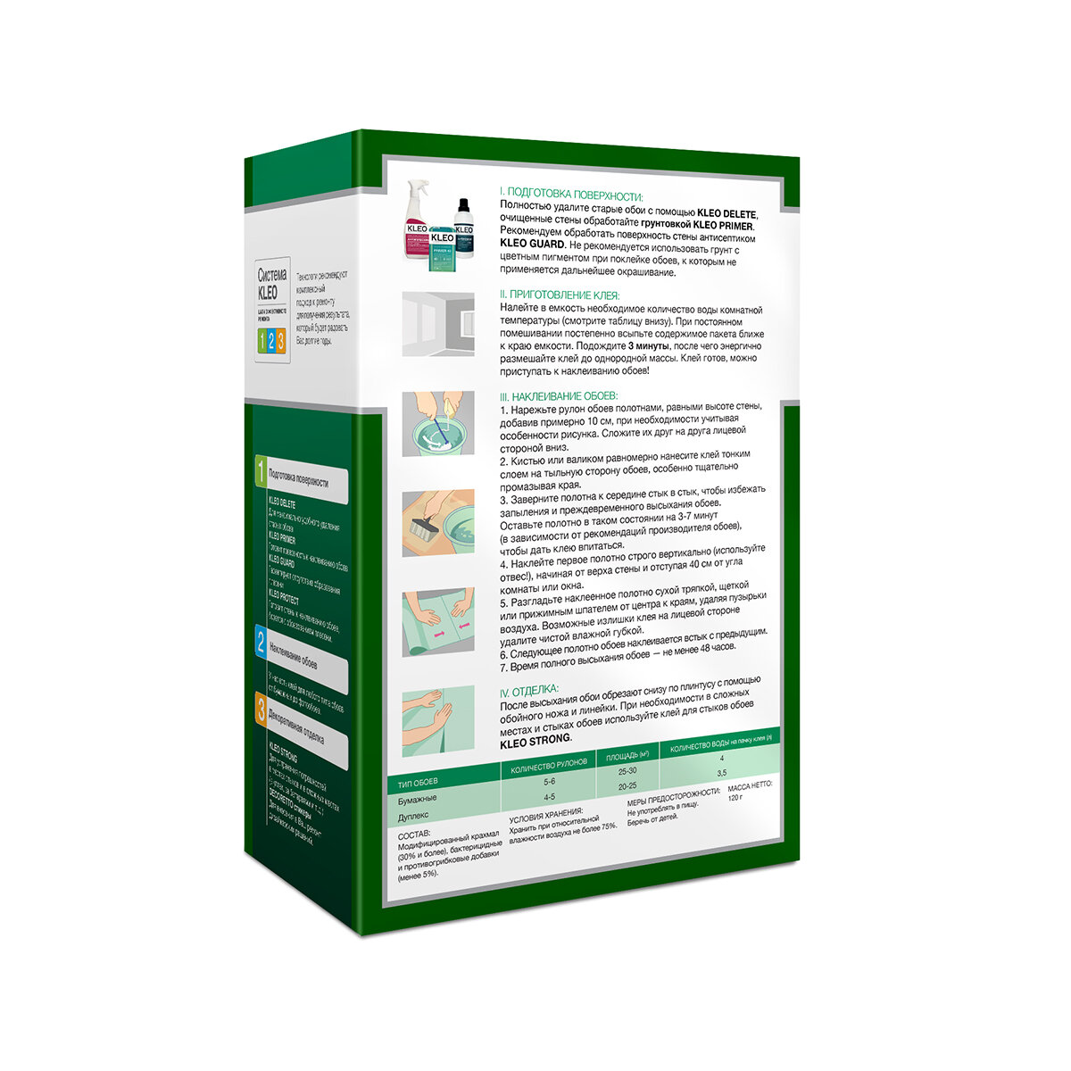 Клей обойный для бумажных обоев KLEO OPTIMA 7-9, 120г, 45 кв.м.