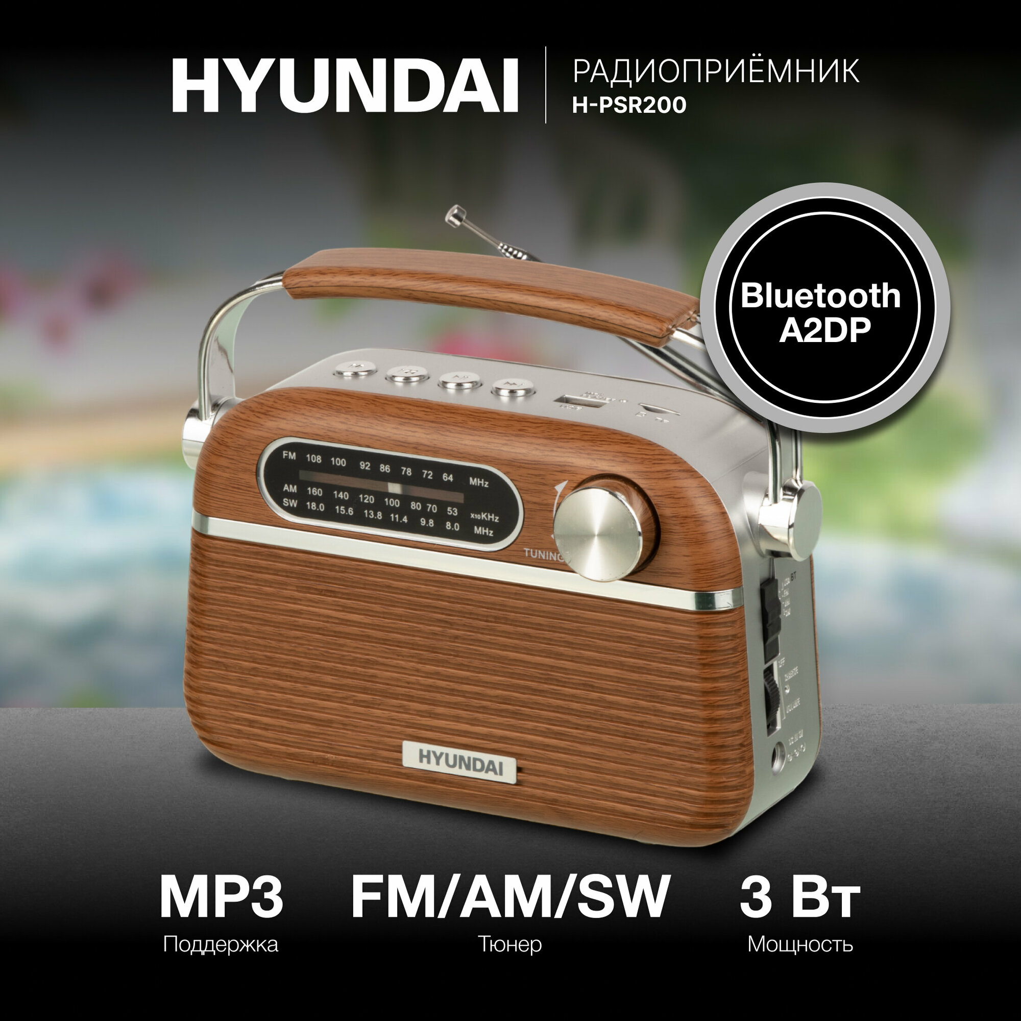 Радиоприемник Hyundai H-PSR200, дерево коричневое интересное: