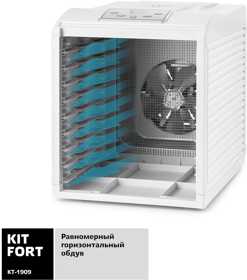 Сушилка для овощей и фруктов KITFORT КТ-1909, белый, 27 поддонов