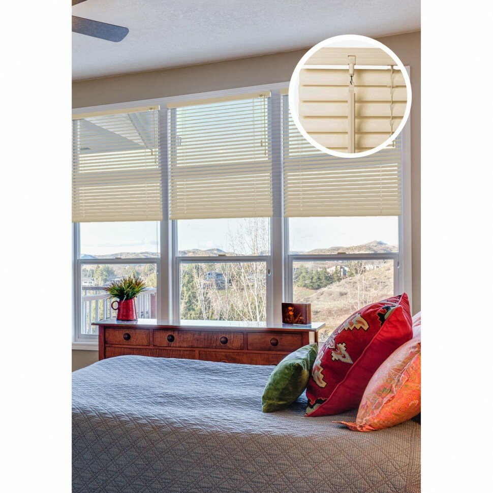 | Минусы: | Крепятся жалюзи не к окну, а к потолку либо к стене |