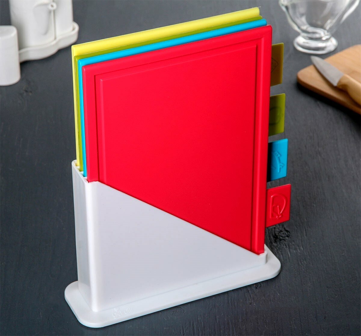 Набор досок разделочных на подставке, 4 шт, цвет микс