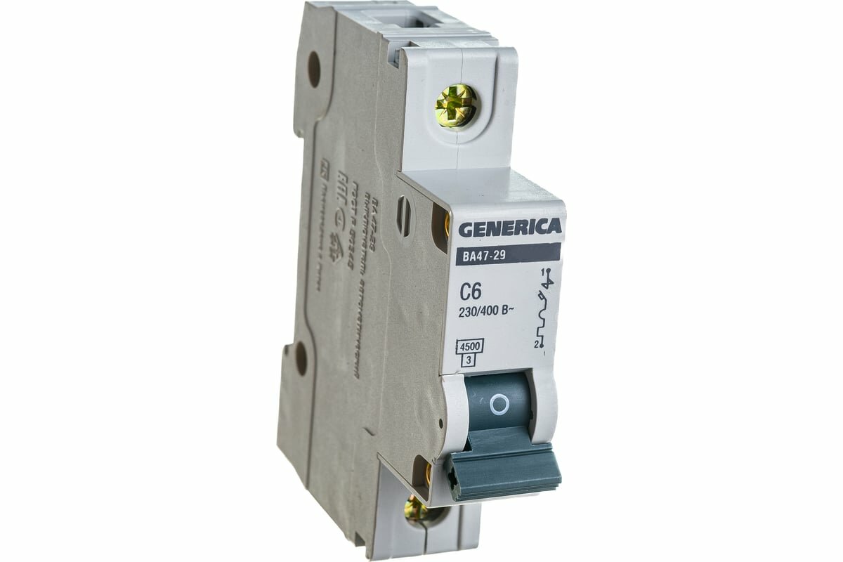 Автоматический выключатель Generica ВА47-29 (эконом) 1P 6А характеристика C (комплект из 6 шт)