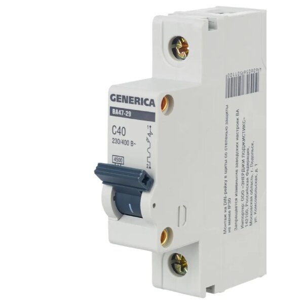 Купить Выключатель автоматический модульный 1п C 40А 4.5кА ВА47-29 GENERICA MVA25-1-040-C