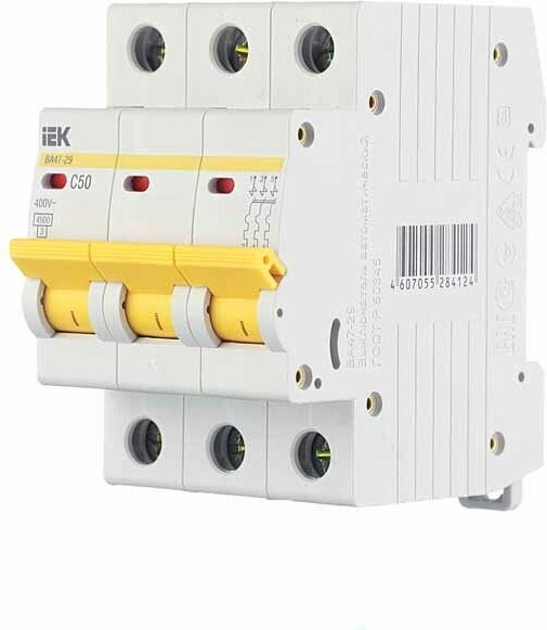 4шт. - Выключатель автоматический трехполюсный 50А C ВА47-29 4.5кА / IEK; арт. MVA20-3-050-C; оригинал / - комплект 4шт