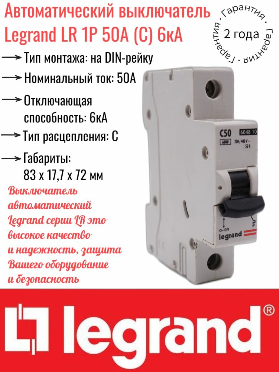 Автоматический выключатель Legrand LR 1Р 50А тип С, 6 kA распродажа!!!