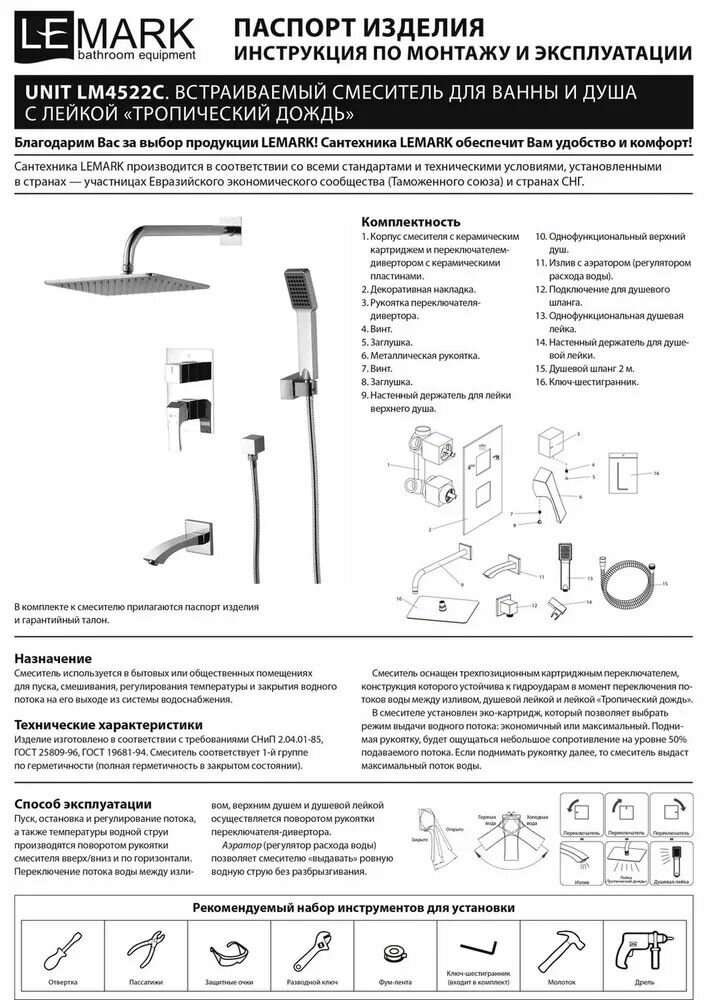 СохранитьДушевая система Lemark Unit LM4522C, встраиваемая, хром интересное: