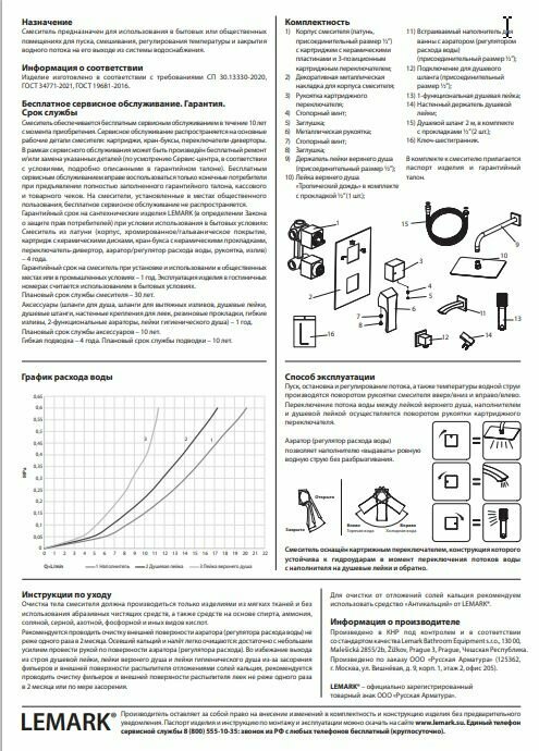 | Количество режимов лейки ручного душа | 1 |