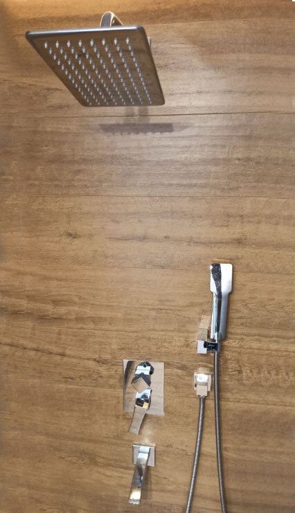 | Минусы: | глубина установки деталей по факту разная. Надо внимательнее регулировать глубину штроб под детали. Иначе после укладки плитки может оказаться, что отражатели излива и ручного душа не достанут до стены:) |