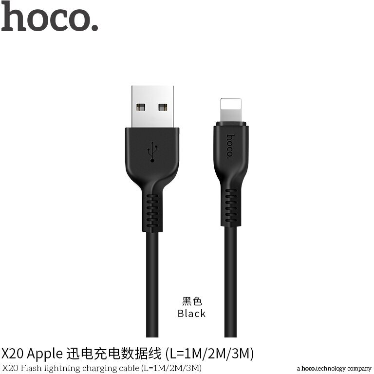 Кабель USB 2.0 hoco X20, AM/Lightning M, черный, 1м
