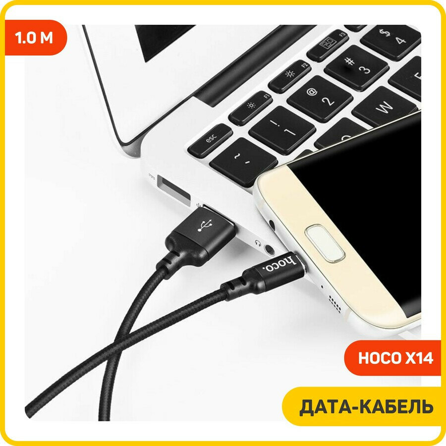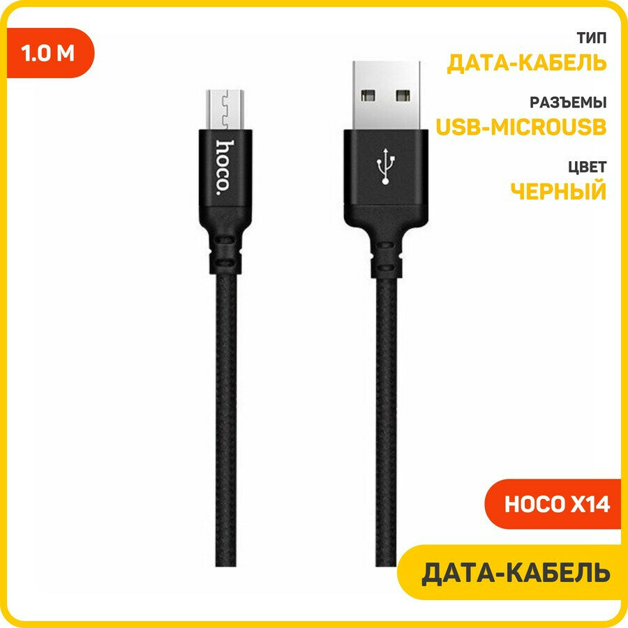 Data кабель USB HOCO X14 micro usb, 1 метр, черный