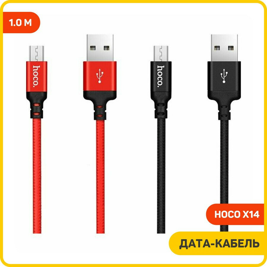Кабель USB 2.0 Hoco X14, AM/microBM, красно-черный, 1 м