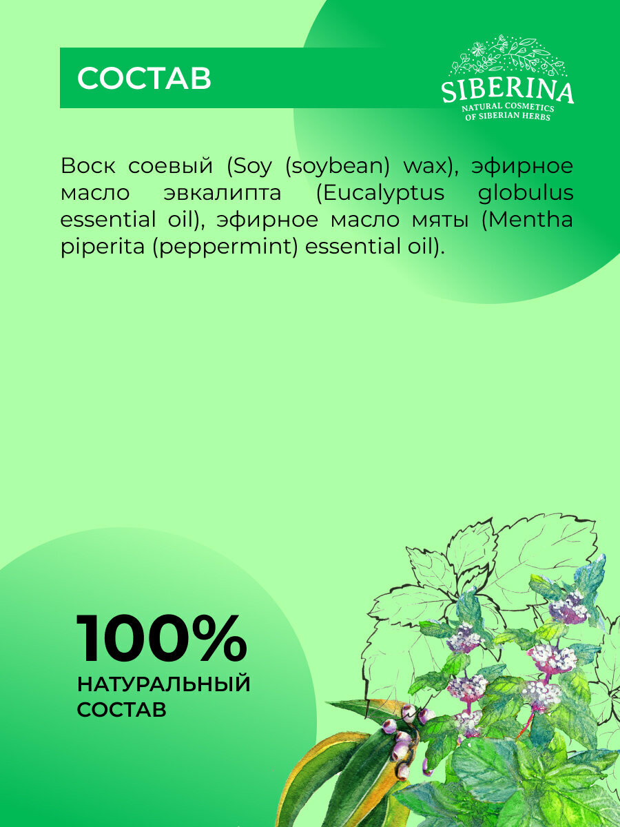 Siberina Натуральная аромасвеча "Мята и эвкалипт" 60 мл интересное: