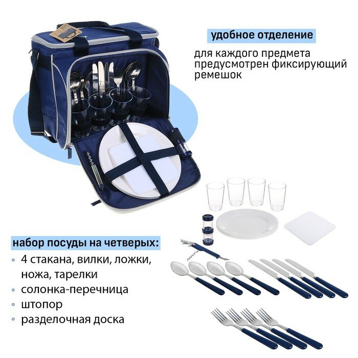 Сумка-холодильник Арктика 4100-4 с набором посуды (4 чел), синий, 13,5л
