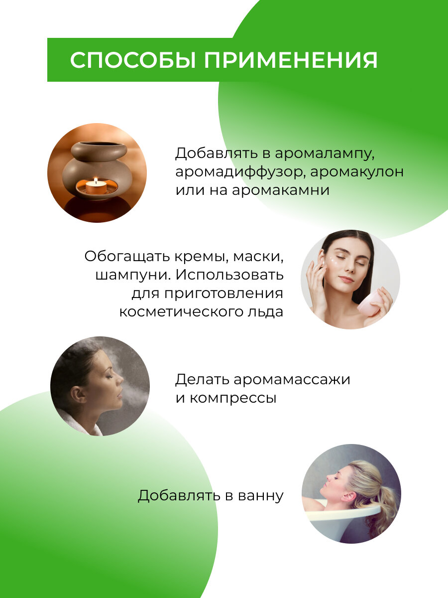 | Отзыв: | Настоящее эфирное масло с приятным, мягким ароматом. Проверяла на салфетке, следов не оставляет. |