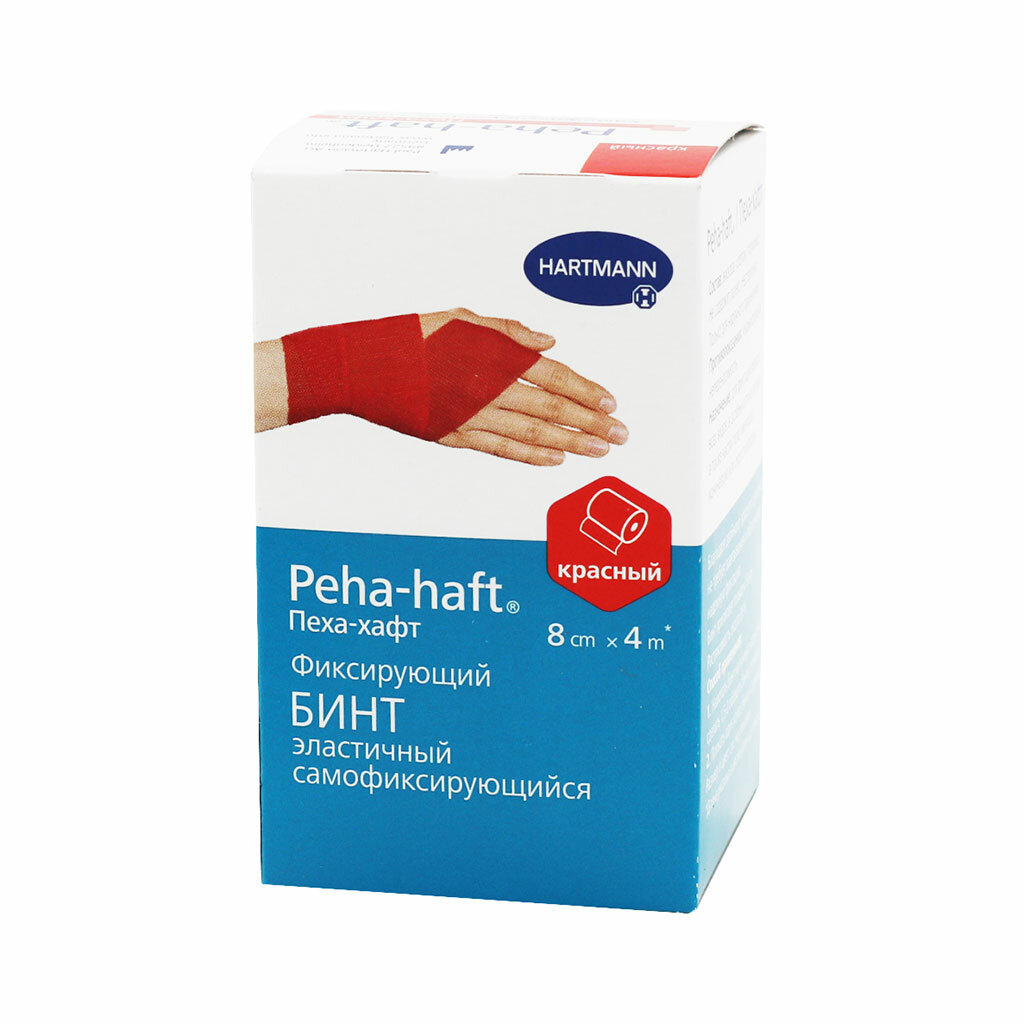 Hartmann бинт самофиксирующийся Peha-haft красный, 4м х 8 см, 1 шт.
